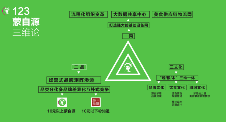 蒙自源開始推動戰(zhàn)略意義上的變革,蒙自源提出了“連鎖經(jīng)營三角論”來分析底層邏輯。